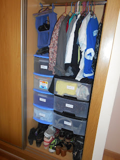 O roupeiro "ficou" assim (ainda tenho muito mas muito que rever na minha opinião), ainda tenho alguns uniformes para entregar e algumas roupas para tirar.